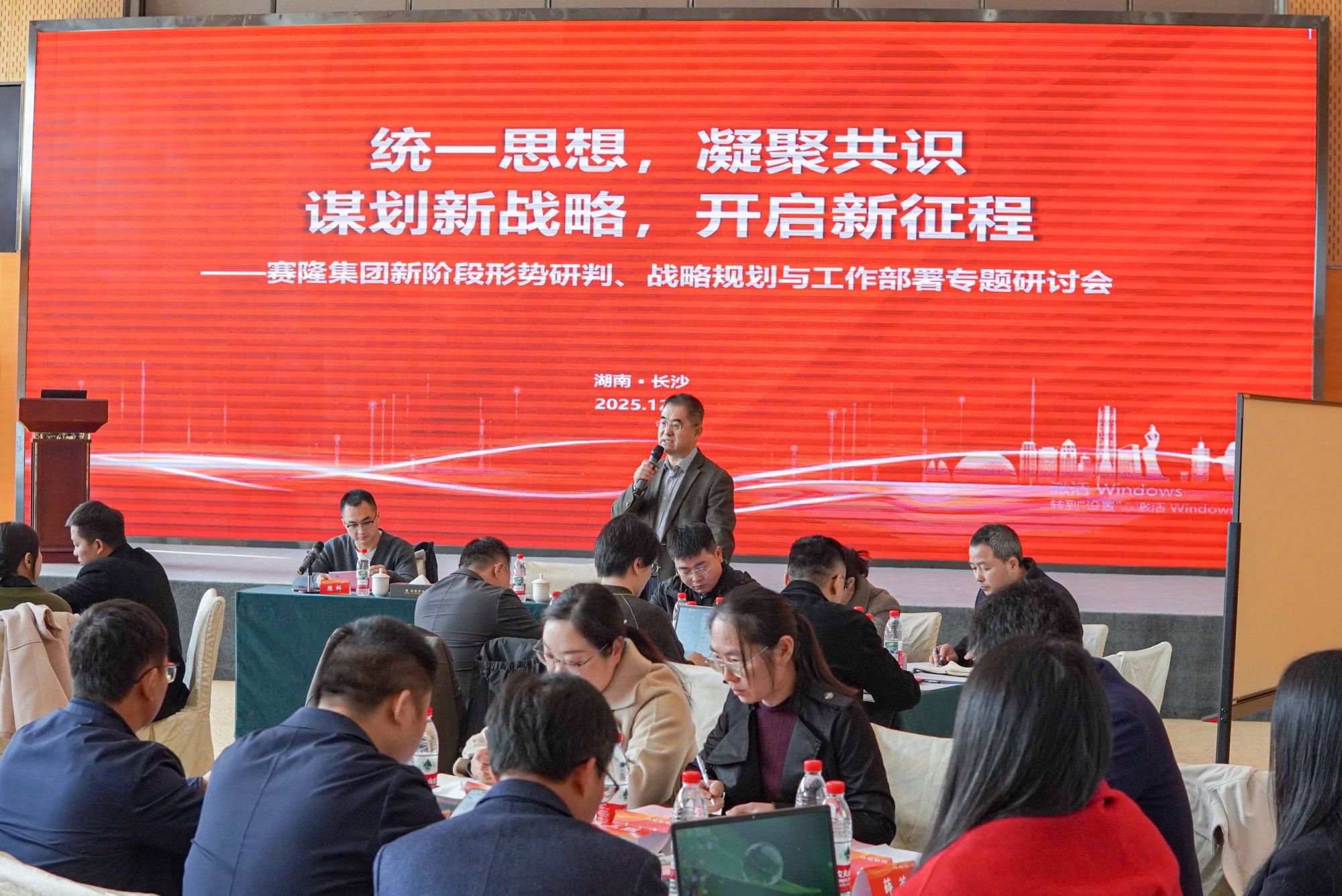 2025年12月8日下午,赛隆集团新阶段形势研判、战略规划与工作部署专题研讨会于星沙基地四楼多功能厅顺利召开。